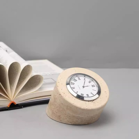 Tilted Roman Travertine Desk Clock Natural Stone Decorative Clock with Slanted Face Modern Office Home Mantelpiece Gift